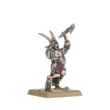 Bestigors are the strongest and most vicious of Beastmen. They typically carry massive axes and wear solid, heavy plates of armour and chainmail adorned with all manner of grisly trophies taken from those that have put up a fight before being cut into pieces.
