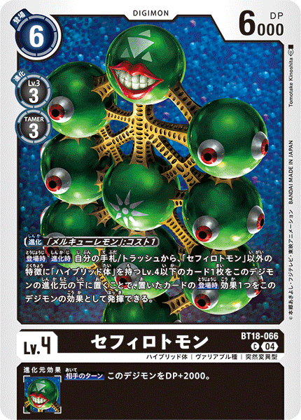 ([Evolve] [Mercuremon]: Cost 1) [When Played] [When Evolving] By placing 1 [Hybrid] trait Lv.4 card other than [Sephirotmon] from your hand/trash at the bottom of this Digimon's evolution sources, you can activate 1 [When Played] effect of the card that was placed as this Digimon's effect |