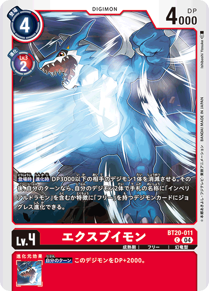 EFFECT [When Played] [When Evolving] Destroy 1 of your opponent's Digimon with 3000DP or less. Then, if it's your turn, you can Jogress evolve 2 of your Digimon into a [Free] trait Digimon card with name containing [Imperialdramon] in your hand