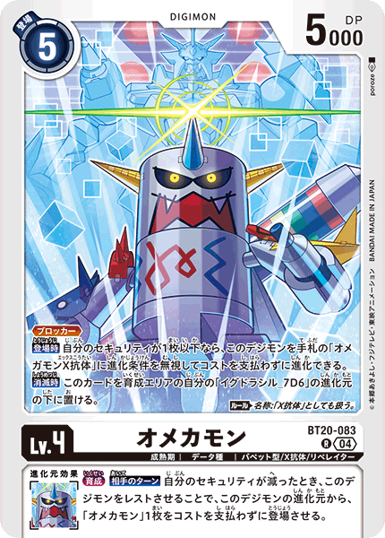 EVO SOURCE EFFECT | (Raising) [Opponent's Turn] When your Security is reduced, by Resting this Digimon, play 1 [Omekamon] from this Digimon's evolution sources without paying its cost |