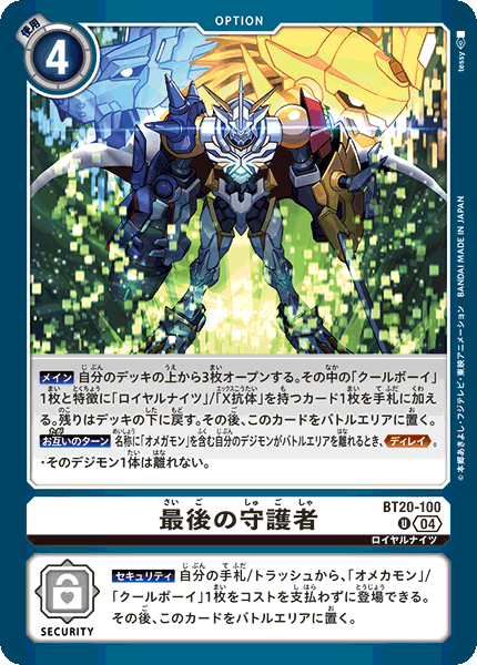 SECURITY EFFECT [Security] You can play 1 [Omekamon]/[Cool Boy] from your hand/trash without paying its cost. Then, place this card in your battle area