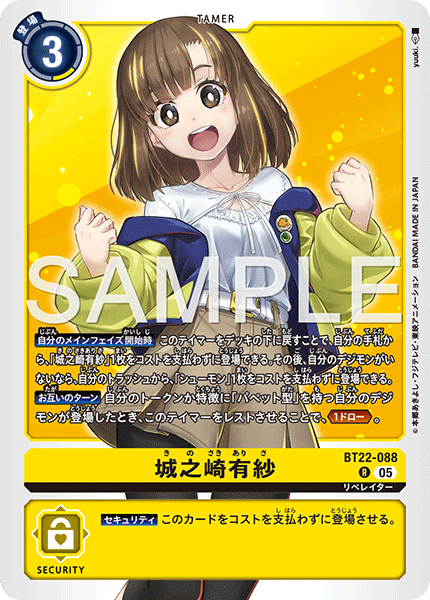 [Start of Your Main Phase] By returning this Tamer to the bottom of the deck, you may play 1 [Arisa Kinosaki] from your hand without paying the cost. Then, if you don't have a Digimon, you may play 1 [Shoemon] from your trash without paying the cost.