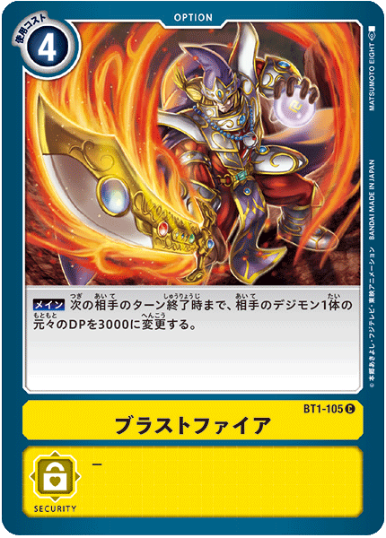 [Main] Change 1 of your opponent's Digimon's original DP to 3000 until the end of your opponent's next turn.
