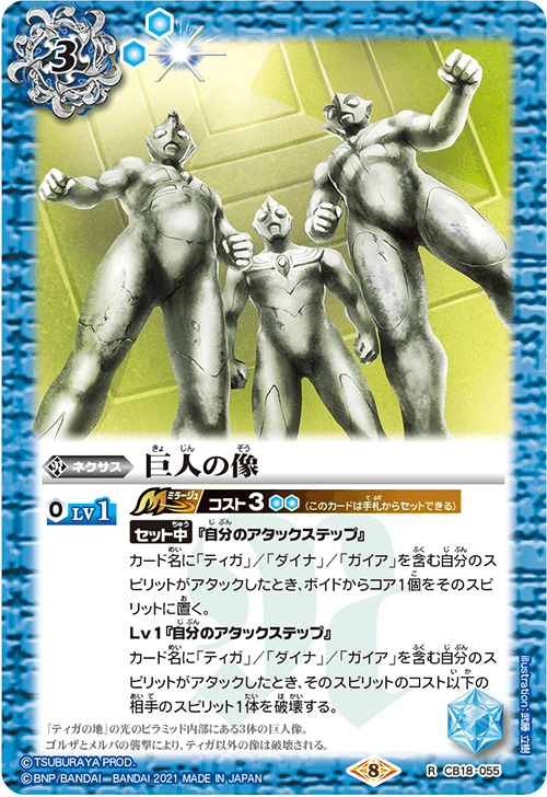 When your Spirits containing the name: [Tiga]/[Dyna]/[Gaia] attacks, destroy 1 opposing Spirit of cost equal or less than that Spirit.