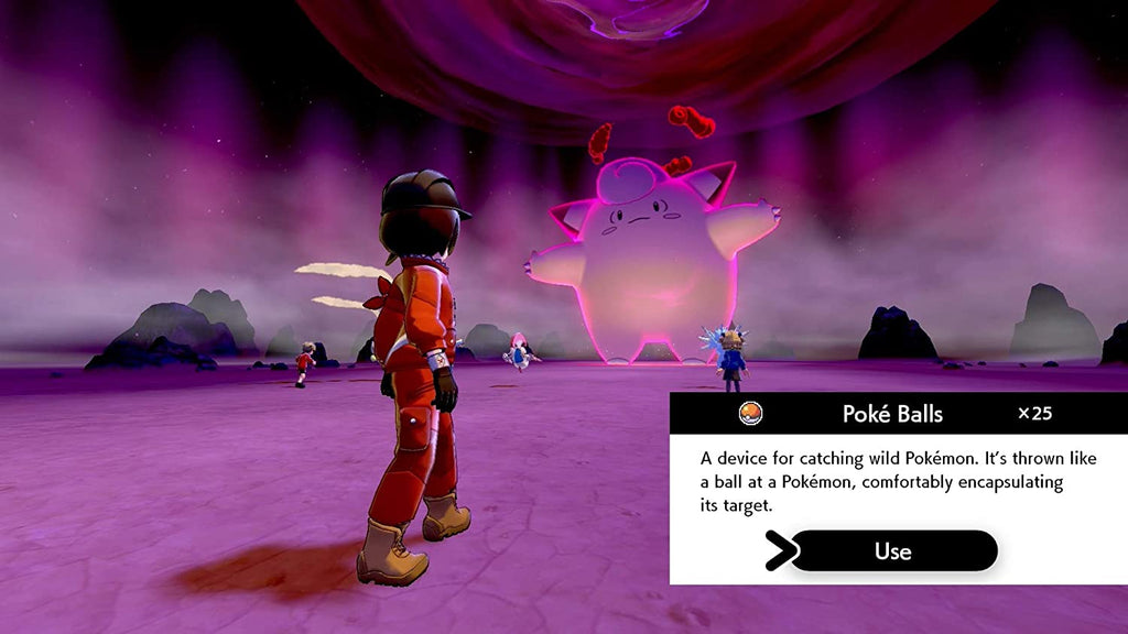 Begin your adventure by choosing one of three new partner Pokémon: Grookey, Scorbunny, or Sobble and encounter new and familiar Pokémon as you catch, battle, and trade. Players can control the camera and explore the vast areas around them in the Wild Area. Team up with other players locally or online in the new multiplayer co-op Max Raid Battles.