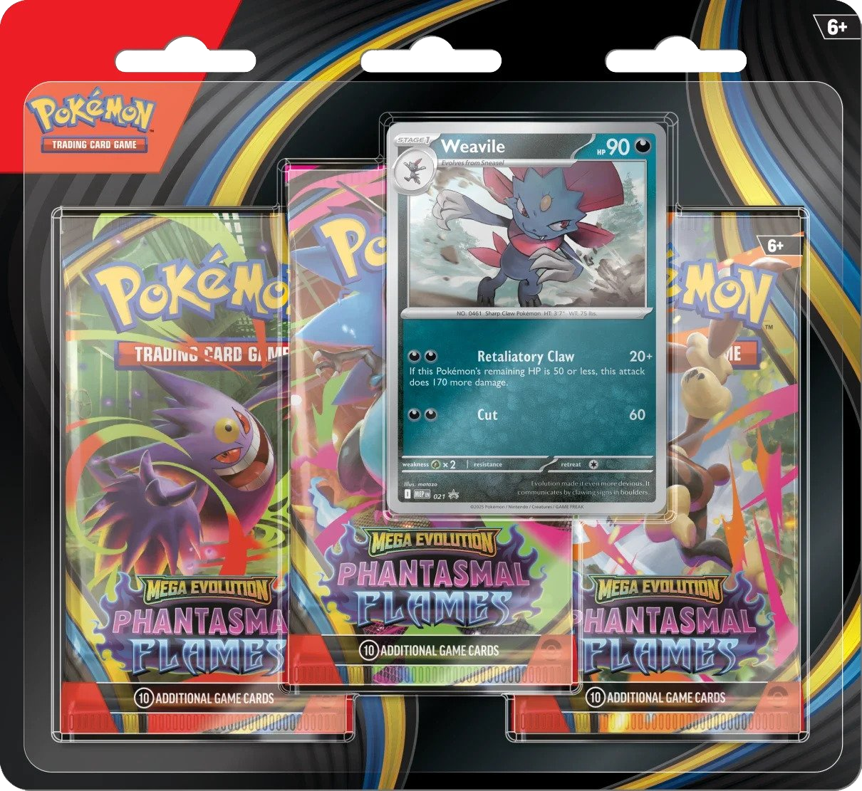 Pokémon TCG: [ME02] Mega Evolution - Phantasmal Flames 3-Blister Set (Weavile)